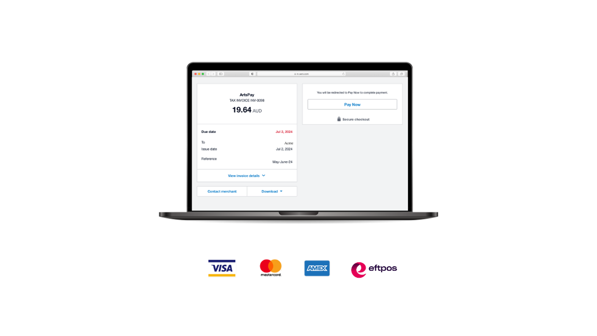ArtsPay streamlines invoicing by integrating directly with your accounting software so you can accept direct debit, credit cards, instalments and payment plans. Fast, flexible and accountant-friendly, give customers more options, while giving back to the arts.
